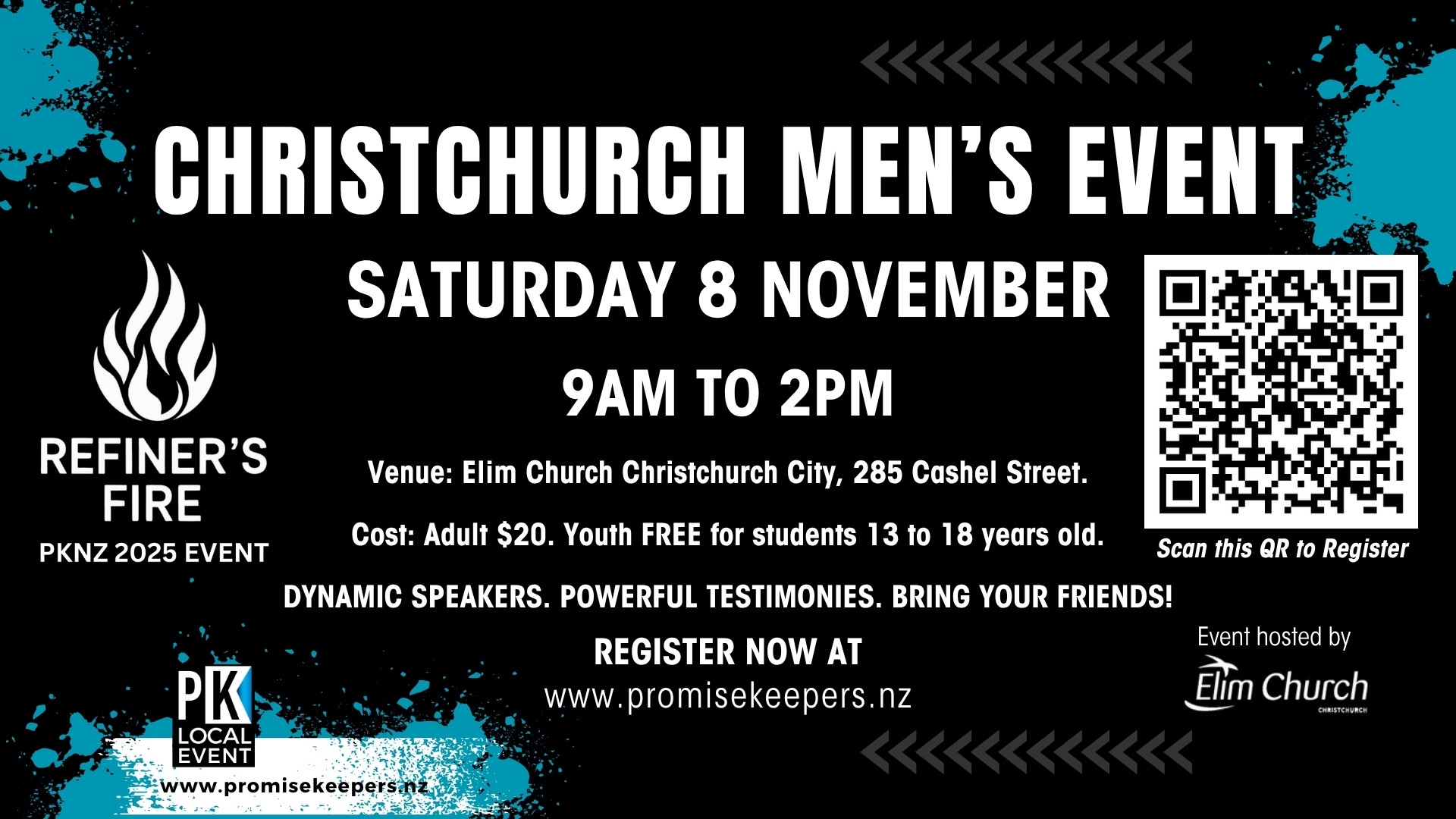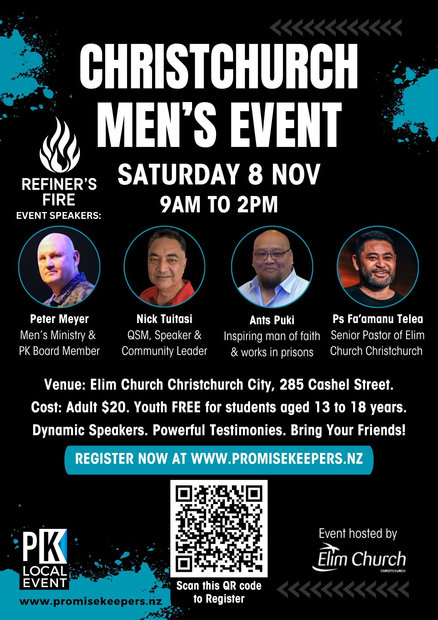 Christchurch Men’s Event, Saturday 8 November 2025, 9am to 2pm at Christchurch Elim City, 285 Cashel Street, Christchurch.